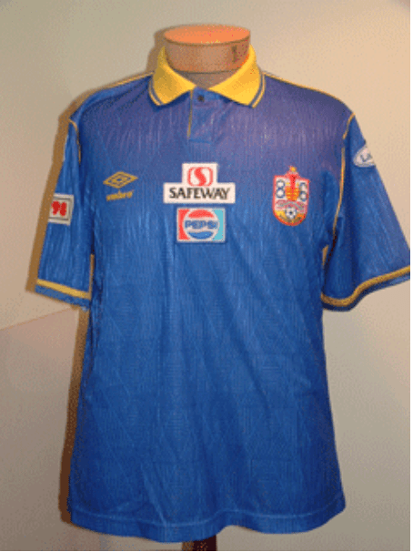 Left to right: Manchester United 1990-92 away by adidas; Tottenham 1986-88 third / away by hummel; Sheffield United 1989-91 away by Umbro; Vancouver 86ers 1991 away by Umbro.