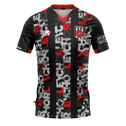 - 28:05 – Chorley FC 2022-23 pre-season GK kit by Hope + Glory, featuring all-caps CHORLEY in bold stripes.