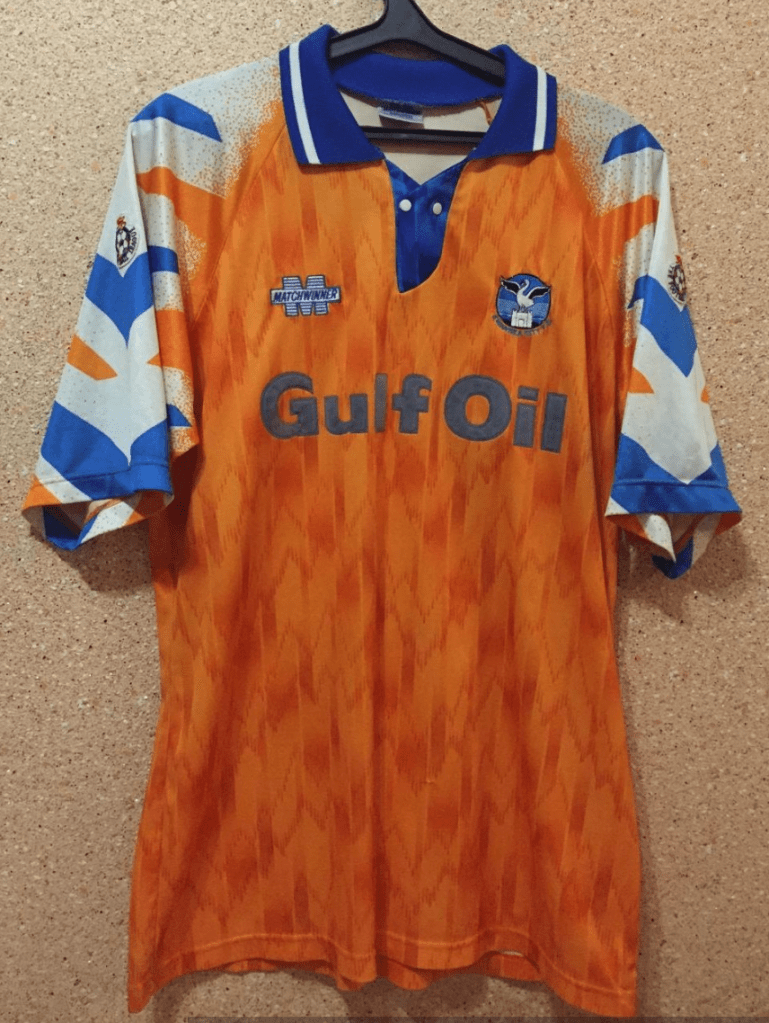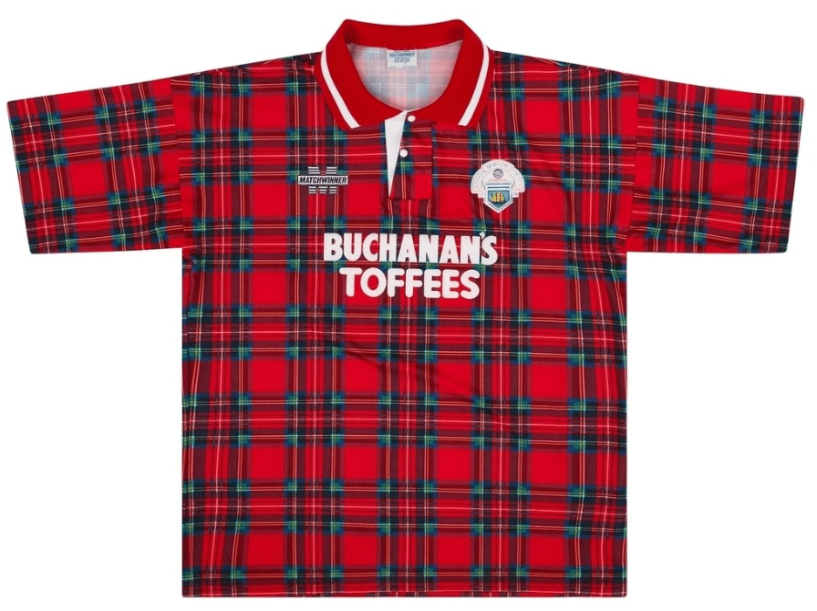 Top: Swansea 93-94 away, Greenock Morton 93-94 home and away